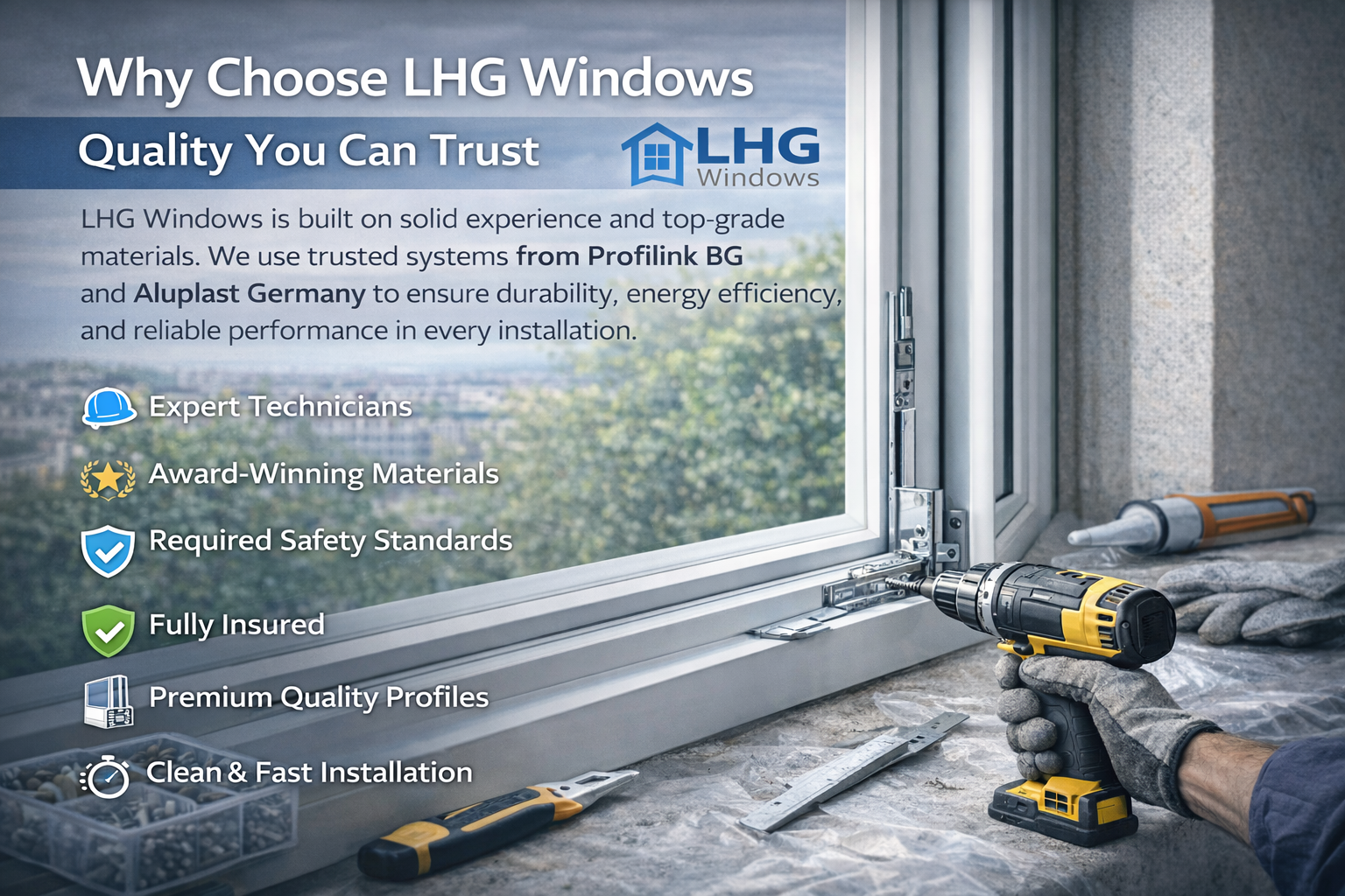 LHG Windows is built on solid experience and top-grade materials. We use trusted systems from Profilink BG and Aluplast Germany to ensure durability, energy efficiency, and reliable performance in every installation.