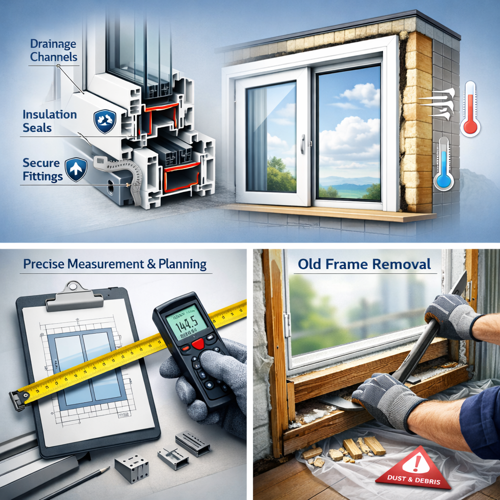 Our window installation service covers new builds, renovations and full replacements. We carefully remove old frames when needed, prepare the openings and install new uPVC or aluminium windows so that they are level, well-sealed and long-lasting.